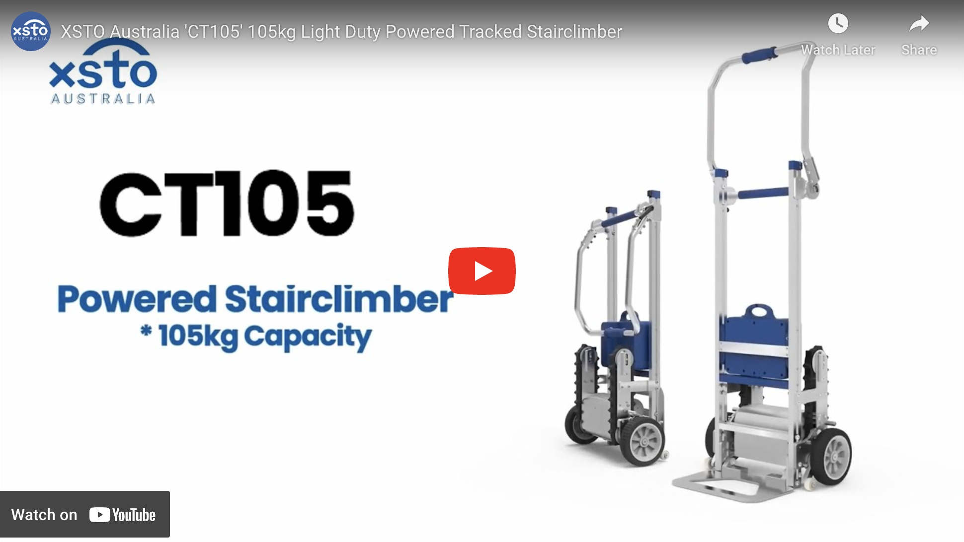 The ‘CT105’ is an Innovative Motorised Stair-Climbing Hand Truck which can carry up to 105kg on Stairs, Effortlessly.